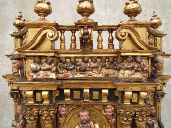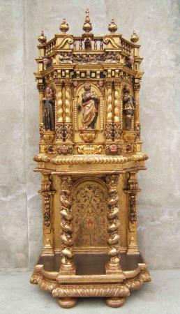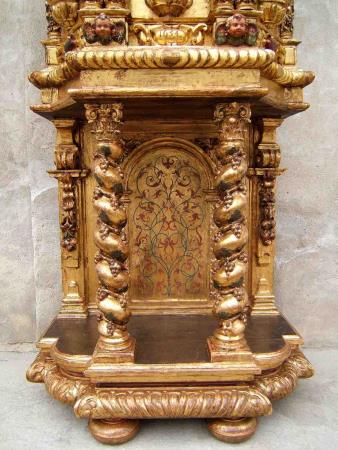 Neive - CN - Chiesa parrocchiale: Restauro di tabernacolo ligneo finemente intagliato, laccato, dorato e dipinto con motivi religiosi. Anche se non esistono testimonianze scritte, tale manufatto si potrebbe far risalire alla bottega del saviglianese Pietro Botto, ebanista presso la Real Casa, operante in queste zone del Piemonte nel XVII secolo. Una cartella intagliata riporta la cifra "1644".