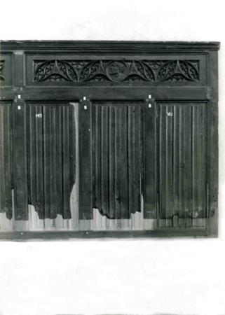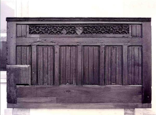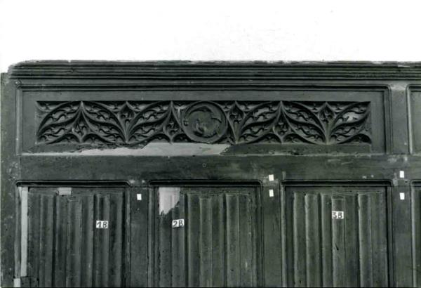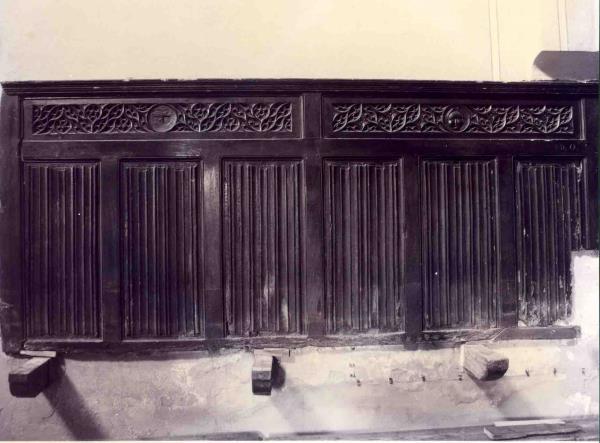 Del coro non rimaneva altro che la boiserie parietale, e a sua volta presentava numerose rotture e lacune.