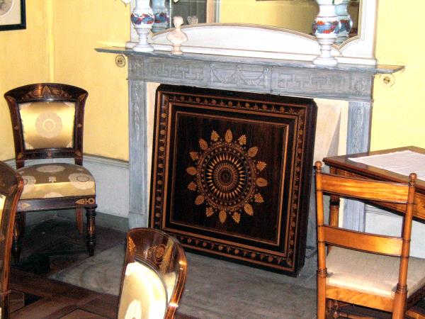 Si tratta di tre prestigiose caminiere (nate per chiudere i vani dei camini durante il loro inutilizzo, per evitare fastidiose correnti d' aria) costruite secondo i canoni dello stile "Carlo X" (1830 c.ca). Anzi, ne "Dettano" i canoni!