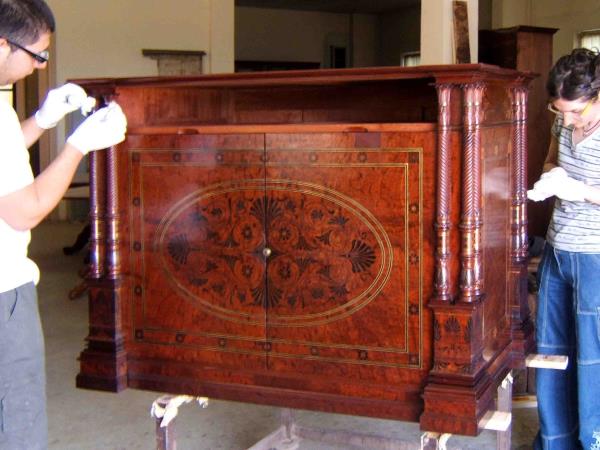 Il metter mano su tali manufatti, attribuiti tra l' altro al famoso ebanista Gabriele Capello, ha veramente richiesto tutta la "scienza" dei Galleano, sia nella ricerca di materiali "il più simile possibile" agli originali, che nell' esecuzione delle parti mancanti.