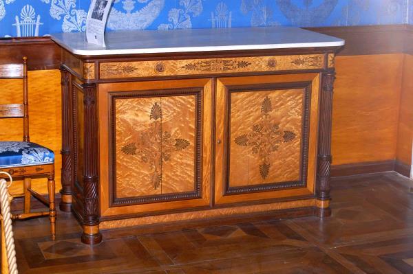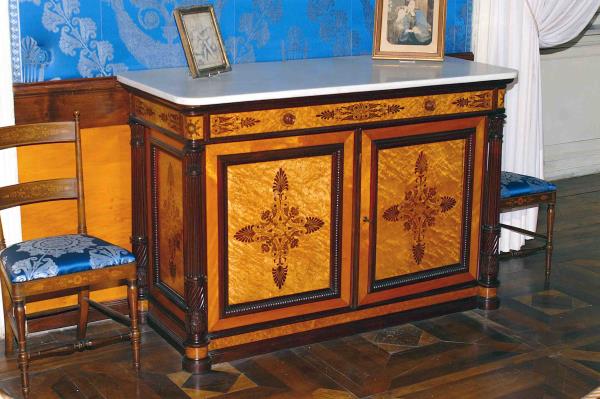 Trattasi di due copie di cassettoni che costituiscono senz'altro l' apice dello stile Carlo X in Italia, insieme agli altri arredi di cui fanno parte. Si trattta degli arredi degli appartamenti del re Carlo Alberto nel castello di Racconigi.