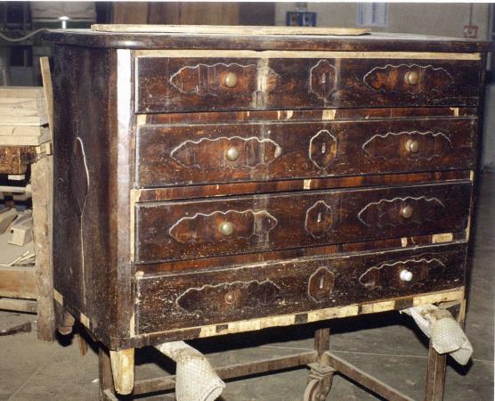 In questo caso il proprietario ci chiese se volevamo comprarlo a poco prezzo, ignorando l'importanza del mobile. Naturalmente, dopo avergli illustrato le caratteristiche e il reale valore il manufatto ci fu affidato per il restauro.