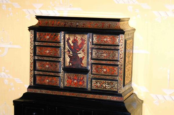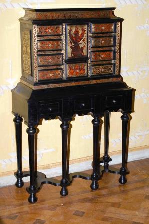 Particolarissimo secretaire di stile "Napoleone III". la parte sopra è lastronata con carapace di tartaruga e sinuosamente filettato in ottone.