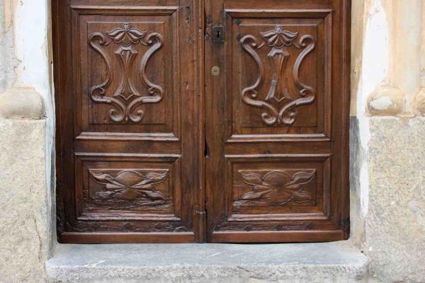 Bernezzo CN - Confraternita - Restauro del portone ligneo settecentesco.