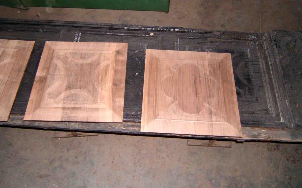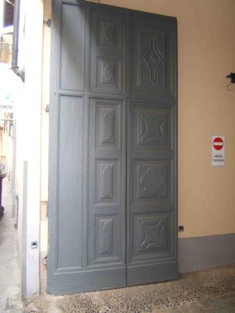 Le ante centrali, carbonizzate in superfice sono state sostituite con due ante nuove. Per la loro costruzione abbiamo utilizzato un noce durame con oltre 50 anni di stagionatura. L' intaglio dei pannelli è stato scolpito a mano. lLe ante sono poi state trattate contro l' insorgere dei tarli e smaltati in sintonia con il resto del portone.