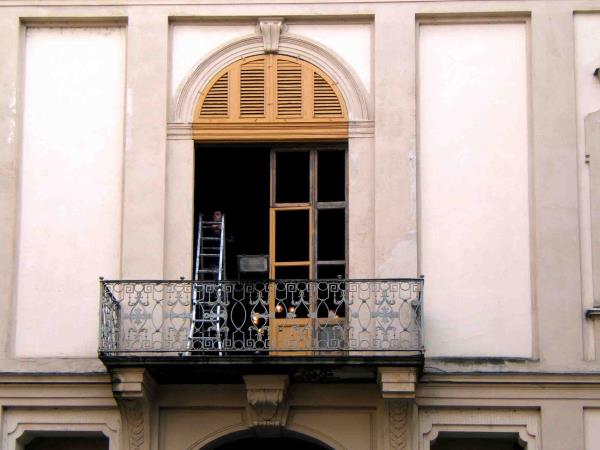 Nel restauro di queste finestre ci siamo "divertiti" a correggere le numerose svergolature (quando si storgono ad elica) delle ante per permettere la loro corretta chiusura e scongiurare il più possibile gli spifferi veramente notevoli prima del restauro, tanto che gli impiegati preferivano il policarbonato di tamponamento!