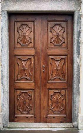 Copia di portale trafugato e ricostruito grazie alle poche fotografie dei matrimoni. Tale porta č situata presso la chiesa Nativitą di Maria Vergine nella frazione Gangaglietti di Caramagna Piemonte - CN