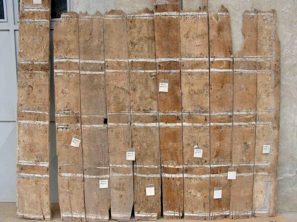 La parte mancante dell'assito originale è stato completato con assi in legno pioppo, come in origine, lavorati a mano per meglio integrarsi con l'ambiente, ma resi riconoscibili dagli elementi originali tramite una leggera mordenzatura.