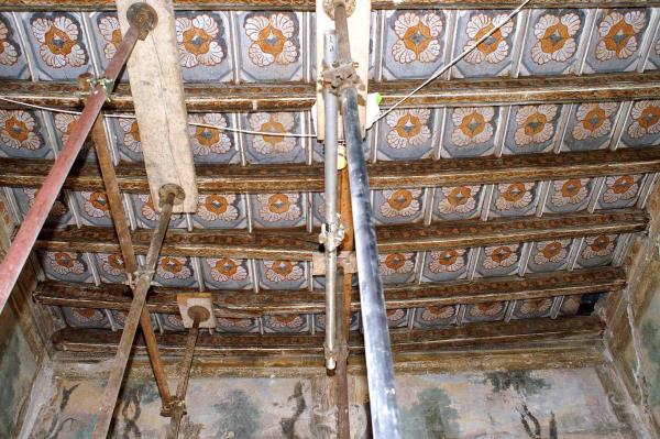 Questo soffitto del XVI secolo, laccato e dipinto, necessitava di urgenti interventi strutturali.